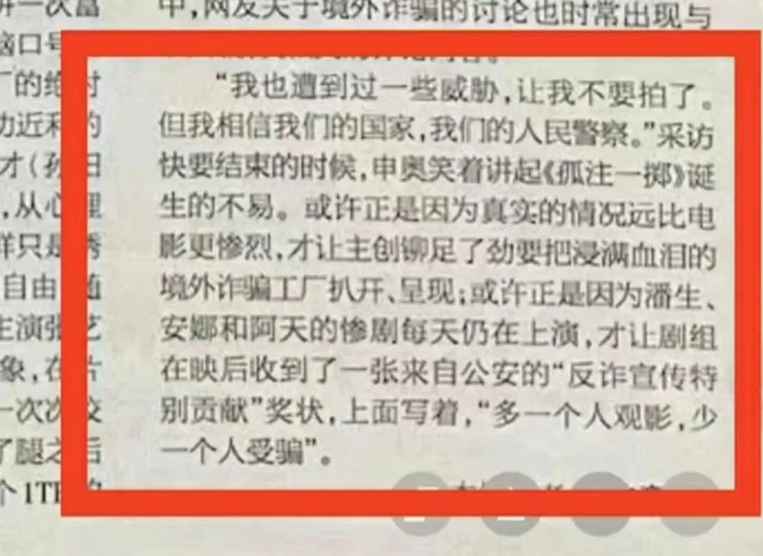 谈及拍《孤注一掷》的原因,申奥坦言,自己的朋友曾被诈骗,像片中阿天一样因此失去了生命,而他自己包括身边许多人也接到过诈骗电话和诈骗短信,所以就下定决心,一定要拍出一部反诈主题的电影。