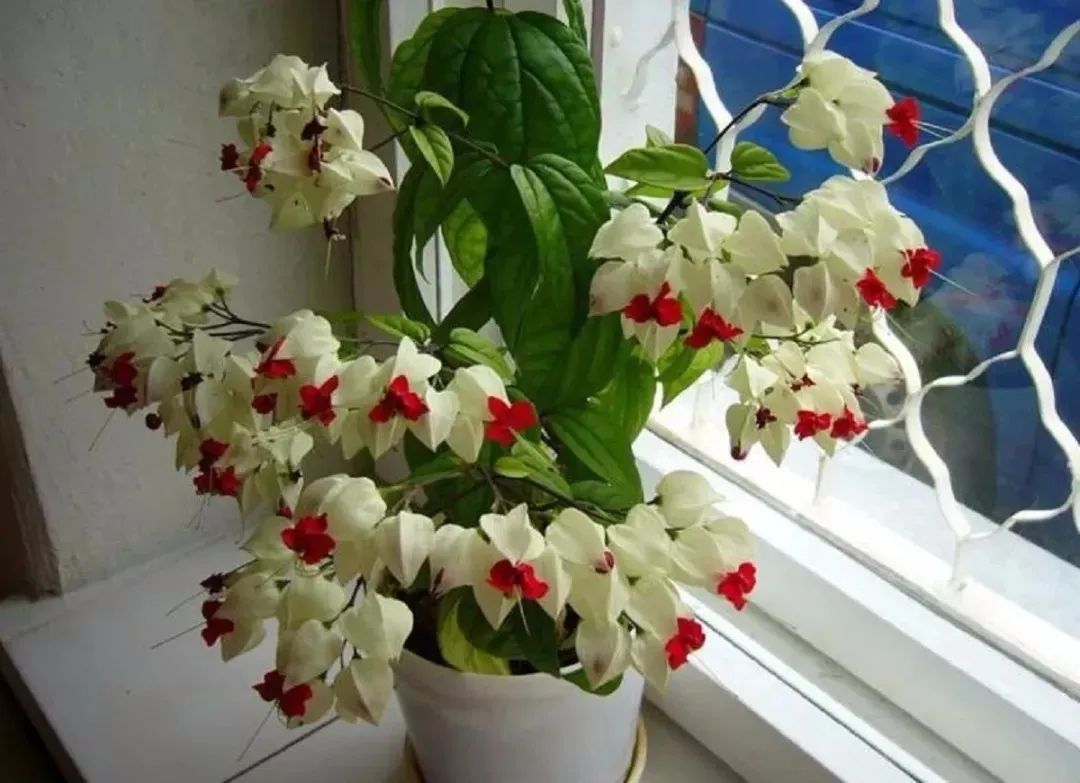龙吐珠有不同的花色,最经典的就是白色的苞片搭配红色的花蕊,花朵就显得特别优雅靓丽,也有一些品种则是白绿色搭配粉色的花朵。