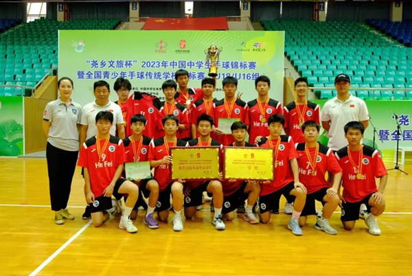 全国中学生手球锦标赛暨全国青少年手球传统学校锦标赛是一项高规格、高水平、高品质的青少年手球传统赛事。手球项目历来是合肥市五十中学东校传统优势体育项目,校手球队分别在2010年、2013年2019年荣获全国冠军,继三年疫情停赛后,再次蝉联冠军!校手球队不仅在国家、省级比赛中斩获奖项,同时向国家队、省队输送和培养了多位优秀的手球人才。