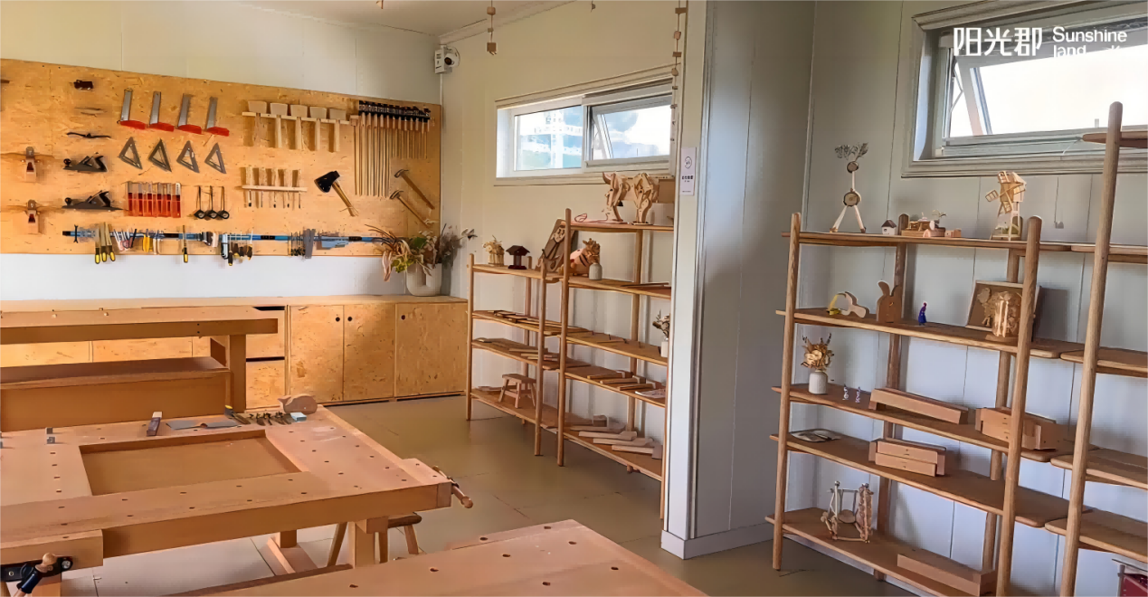 有自然的野趣,也有亲自动手DIY的快乐。可以和孩子在木艺主题空间手作竹蜻蜓,木质八音盒,满满创意享童心之趣;也可以在Sunshine烘培教室做一名烘焙小师傅,体验8种烘焙课程,把爱和美好都藏在甜点里。