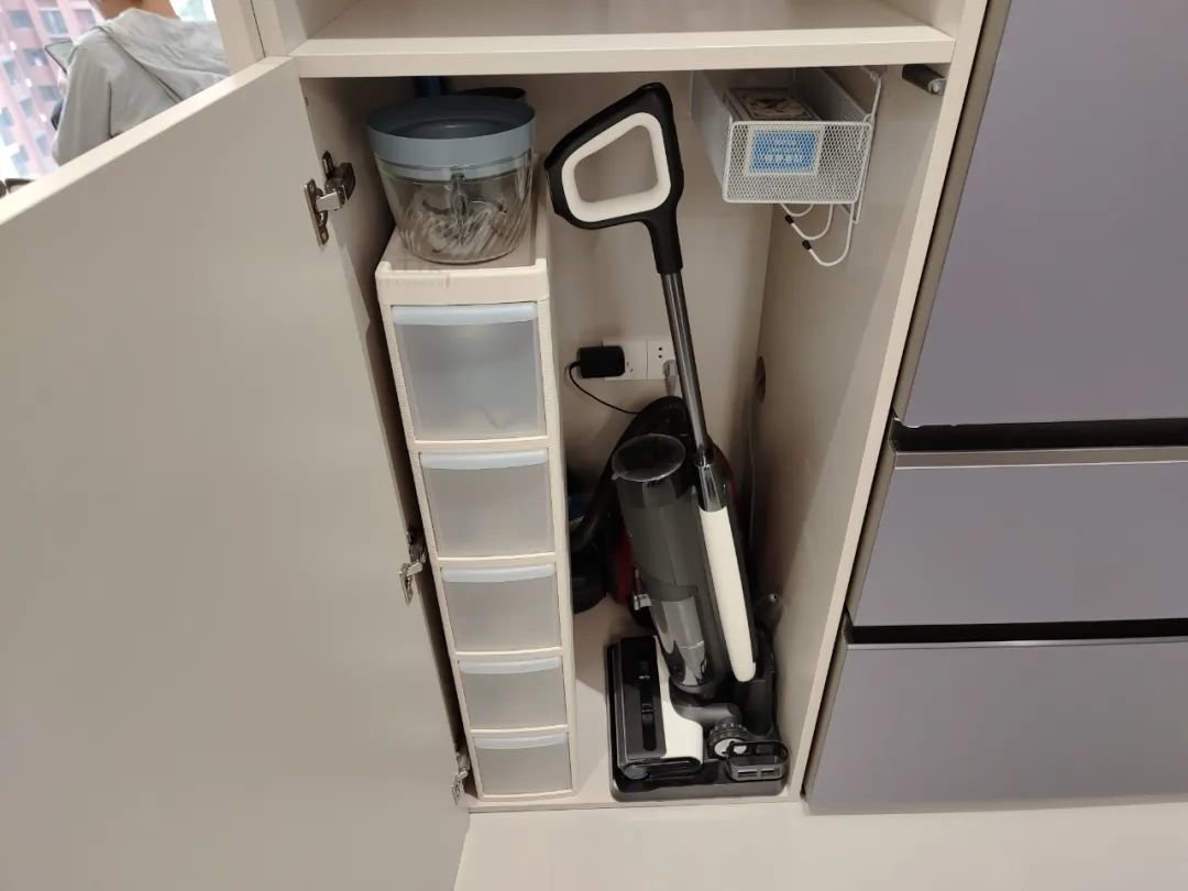 厨房用品收纳在厨房里面、洗衣液就收纳在洗衣机附近,需要用到的时候就不用跑去别的空间取用。