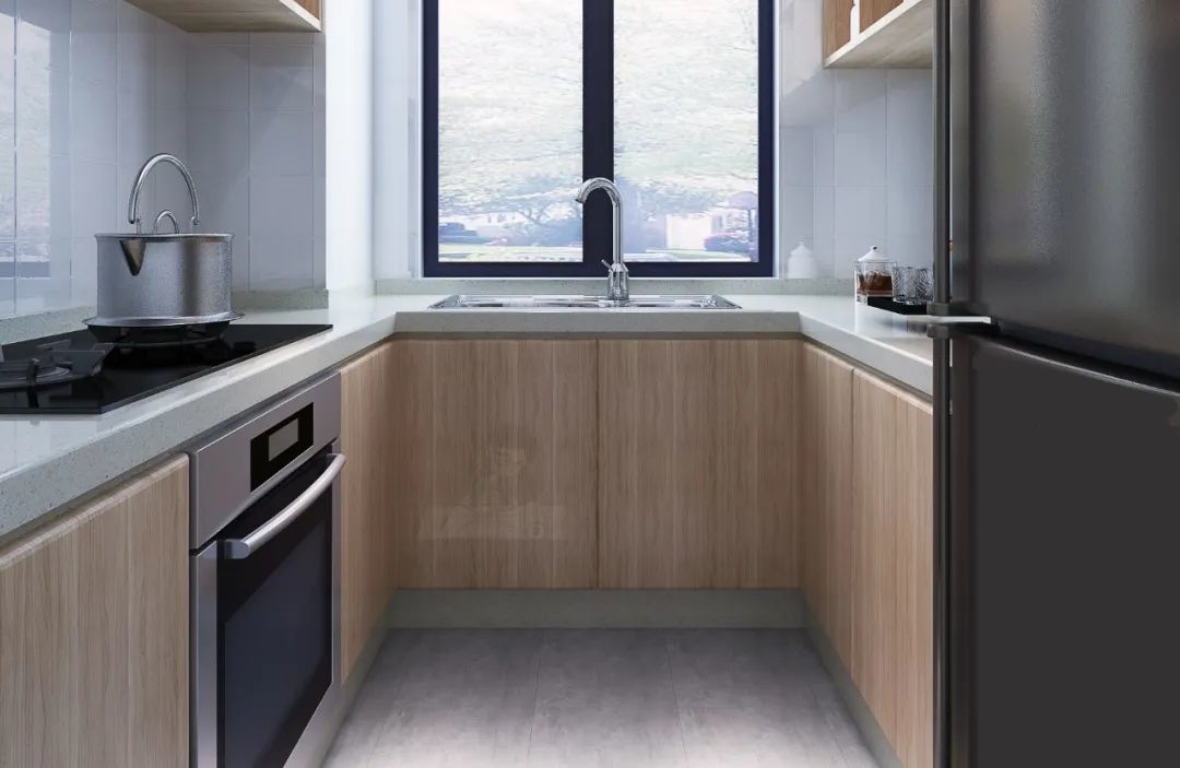 比如橱柜做1-2个开放格,常用的小电器、厨具用品,也可以放在这里,既不会显得杂乱,又能取用方便。