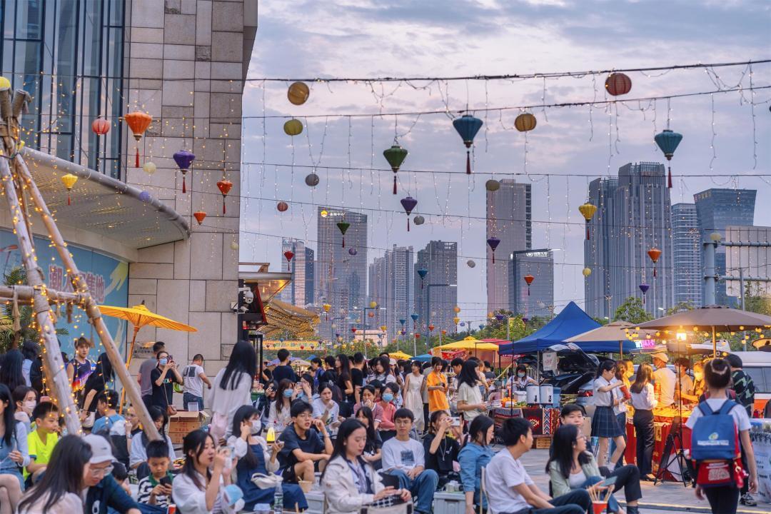 除此以外,经过改造后的十亩地·泰然晚风集市,让市民游客可以不出国门就能吃遍东南亚美食。头顶满是五彩的傣族灯串和彩色的油纸伞,脚踩人造草地,还摆满了户外座椅,每晚舞台都有歌手深情驻唱。