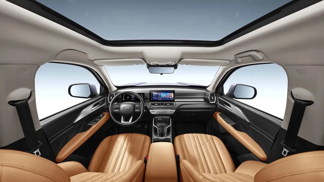 哈弗H5配备了悬浮式仪表盘和12.3英寸中控屏,中控屏下方是空调出风口以及常用的物理按键。挡把造型采用坦克300同款造型,搭配多功能方向盘与换挡拨片,不仅突出了整车的越野气质,还拉高了整车的科技气氛。