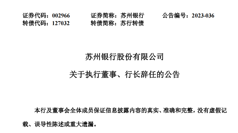 8月14日,苏州银行股份有限公司(以下简称“苏州银行”)披露《苏州银行股份有限公司关于执行董事、行长辞任的公告》。