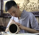 一个个粗糙的竹筒、木块在朱泓的刻刀下华丽转身为一件件精美的艺术品。