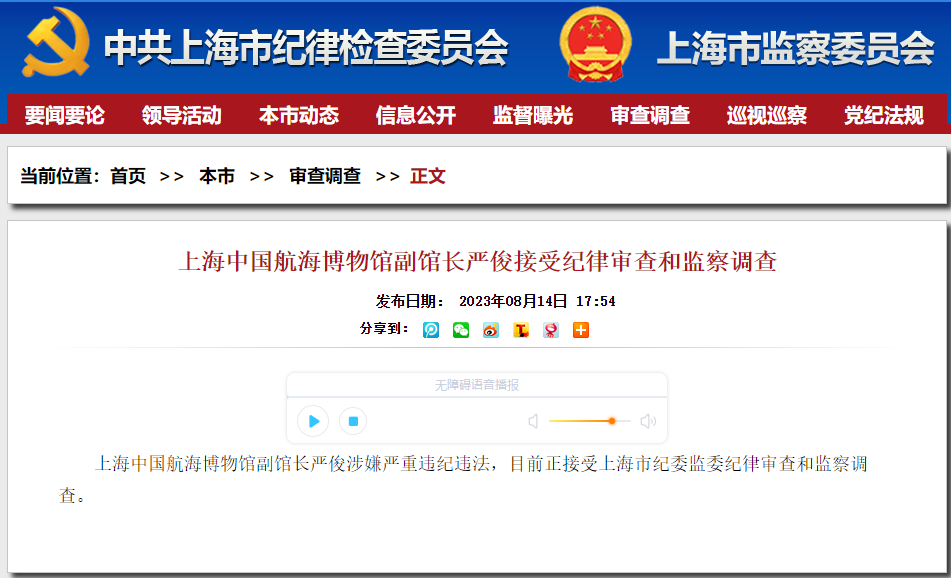 据上海市纪委监委8月14日晚通报,上海中国航海博物馆副馆长严俊涉嫌严重违纪违法,目前正接受上海市纪委监委纪律审查和监察调查。相关信息显示,上述通报中的严俊与原上港集团原总裁严俊为同一人,而严峻辞去上港集团总裁职务不足半个月。8月1日,上港集团发布公告称,董事会于2023年7月29日收到董事、总裁严俊先生的书面辞职报告。严俊因工作原因申请辞去公司董事、总裁职务,同时辞去董事会下设预算委员会主任委员的职务。辞职后,严俊将不再担任公司任何职务。据公开资料,严俊生于1968年,1991年参加工作,历任上海联合国际船舶代理有限公司总经理、党支部书记,上港集箱外高桥码头分公司党总支书记、总经理,上港集团振东集装箱码头分公司党委书记、经理,上港集团九江港务有限公司党委书记、董事、总经理,上港集团总裁助理,上港集团副总裁、党委委员、党委副书记、董事等职。另据相关信息显示,此次严俊被调查,或涉及原中国足协主席、党委副书记陈戌源一案。据悉,严俊也是陈戌源一手提拔起来的老上港人。2014年,陈戌源主导上港集团对上海东亚俱乐部的收购,俱乐部更名为上海上港,并在2018赛季夺得队史首个中超冠军。2019年陈戌源离开上港集团,被任命为中国足协主席。2023年2月14日,湖北省纪委监委网站发文,中国足球协会主席、党委副书记陈戌源涉嫌严重违纪违法,目前正接受中央纪委国家监委驻国家体育总局纪检监察组和湖北省监委审查调查。值得注意的是,中国国家男子足球队原主教练李铁和足协原秘书长刘奕、常务副秘书长兼国家队管理部部长陈永亮均是接受中央纪委国家监委驻国家体育总局纪检监察组和湖北省监委监察调查。
