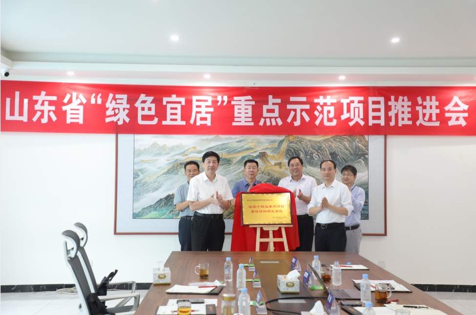 高赏举就山东省碳达峰碳中和专项“绿色宜居”科技示范工程项目天风泰公司承担任务阶段重要成果和效益以及考核指标的完成情况进行了汇报。同时与中国林业科学研究院所首席科学家于文吉、与会领导就重组木材的行业情况、标准制定、产品研发等领域的发展以及为保障“绿色宜居”科技示范工程项目的顺利实施业务的合作进行了深入的探讨与交流,达成了战略合作意向,签署了战略合作协议,并进行了国家“十四五”重点项目重组材料研发基地的揭牌。