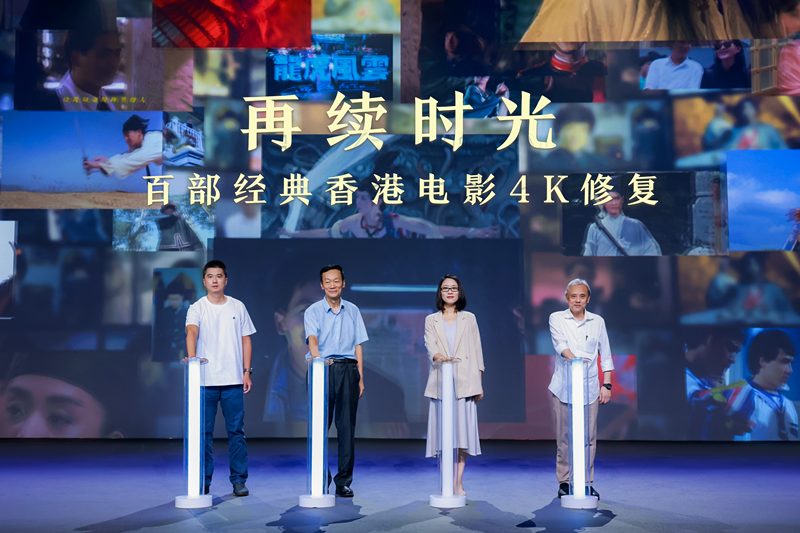 活动现场,中国电影资料馆副馆长张小光、香港导演陈嘉上、抖音副总裁陈都烨、火山引擎视频云技术架构总监王悦共同启动“经典香港电影修复计划”。