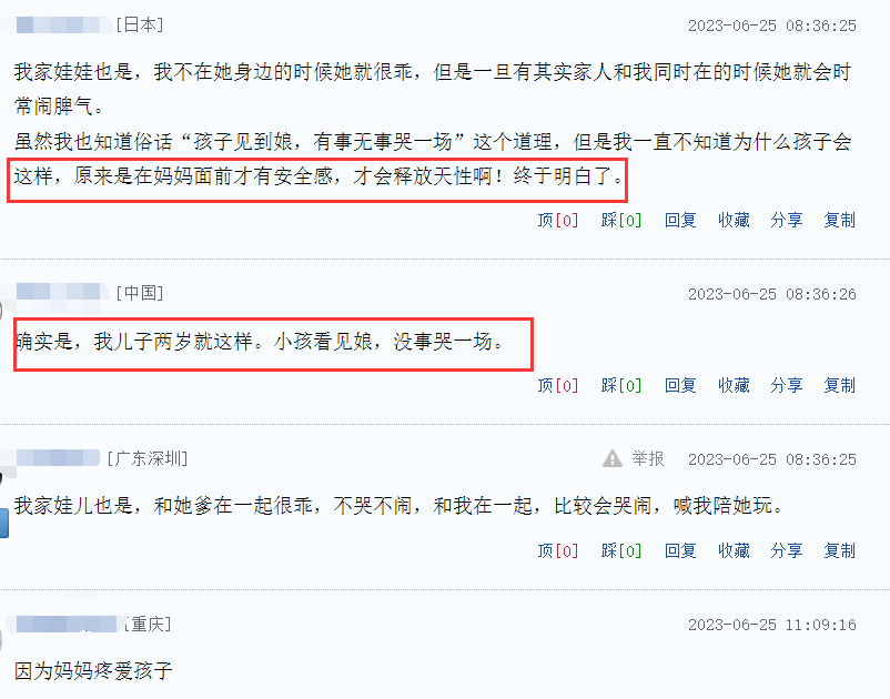 孩子看到妈妈时哭闹,并不是因为母亲太惯娃了。孩子在跟别人的时候都非常乖巧,一见到妈妈才会还原成最真实的自己。宝宝和妈妈撒娇哭闹,说明亲子关系特别融洽,孩子很依恋自己的母亲。