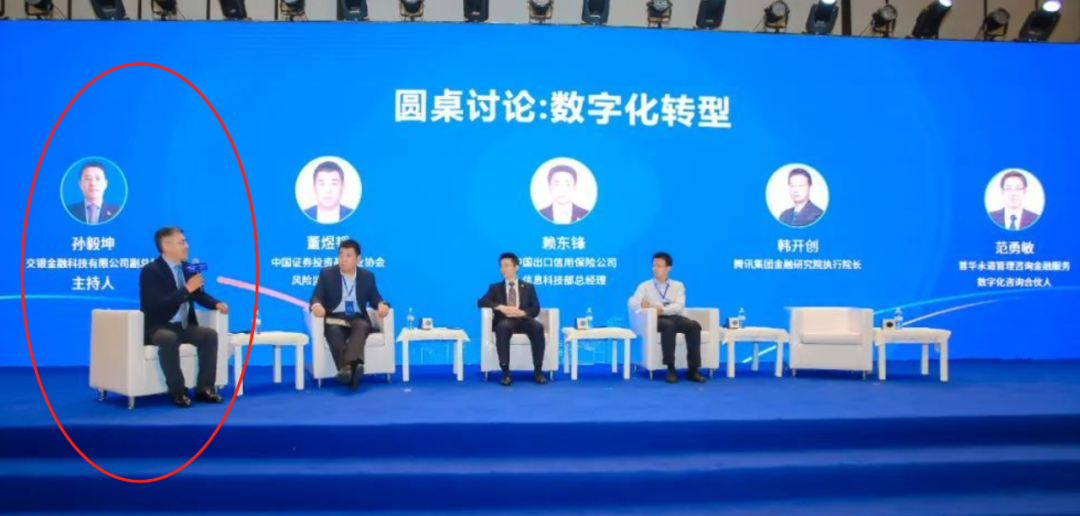同时,交银金科副总裁孙毅坤主持“数字化转型”圆桌讨论,与来自中国证券投资基金业协会、中国出口信用保险公司及腾讯集团金融研究院的数字化转型专家围绕如何加快数字化转型,营造良好数字生态,赋能高质量发展进行研讨。