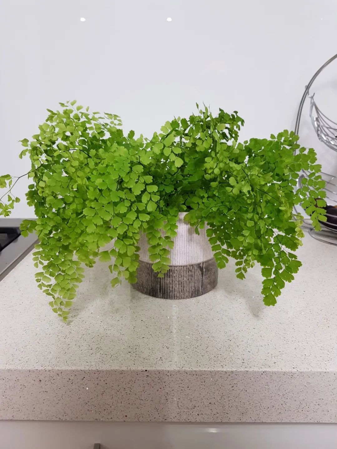 铁线蕨有着柔和而清新的叶子,它的叶片是特别旺盛的,将铁线蕨养在朝北的窗台完全没有问题,在一些阴凉的浴室里都可以维持存活。铁线蕨的优点就是看起来非常迷人,容易打理,不过缺点就是害怕干燥,需要经常喷雾状水维持湿度。