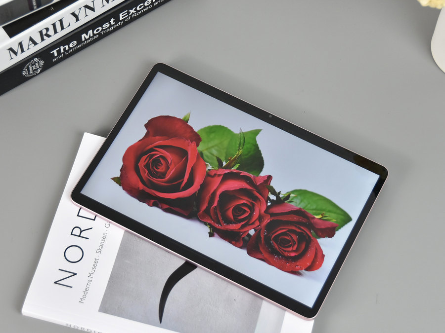在配备11.5英寸大屏幕的同时,这款平板电脑还兼顾了轻薄设计。其机身重量约约530g,机身厚度约6.67mm,机器握持手感很不错,携带起来也非常方便。