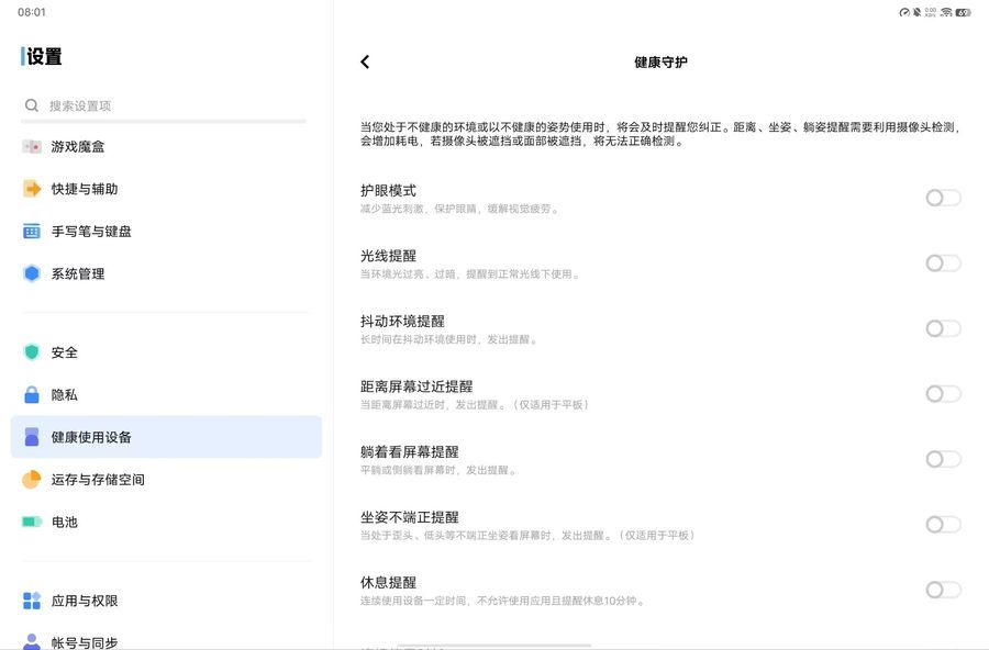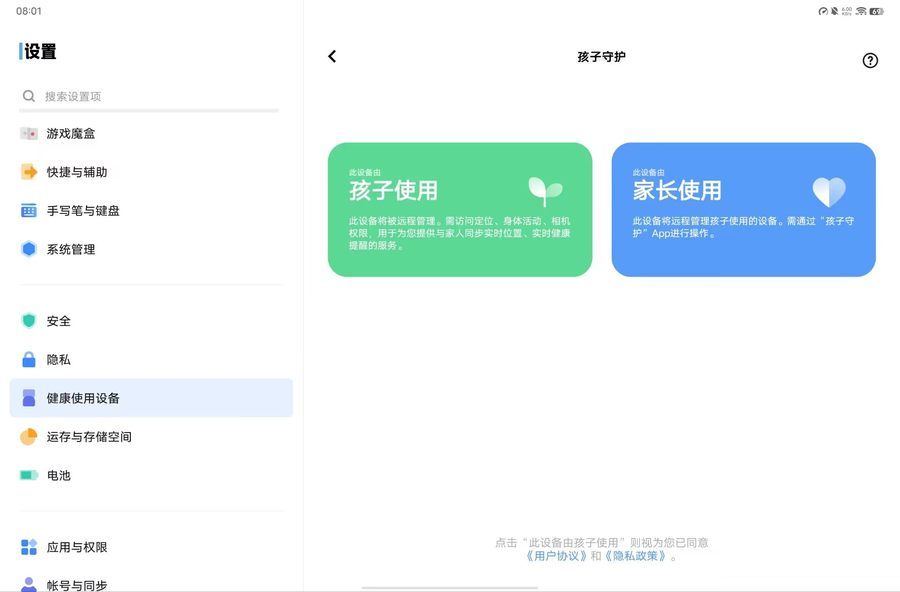 vivo Pad Air还专为儿童设计了“健康使用设备”功能,家长们可以放心给孩子使用这款平板。