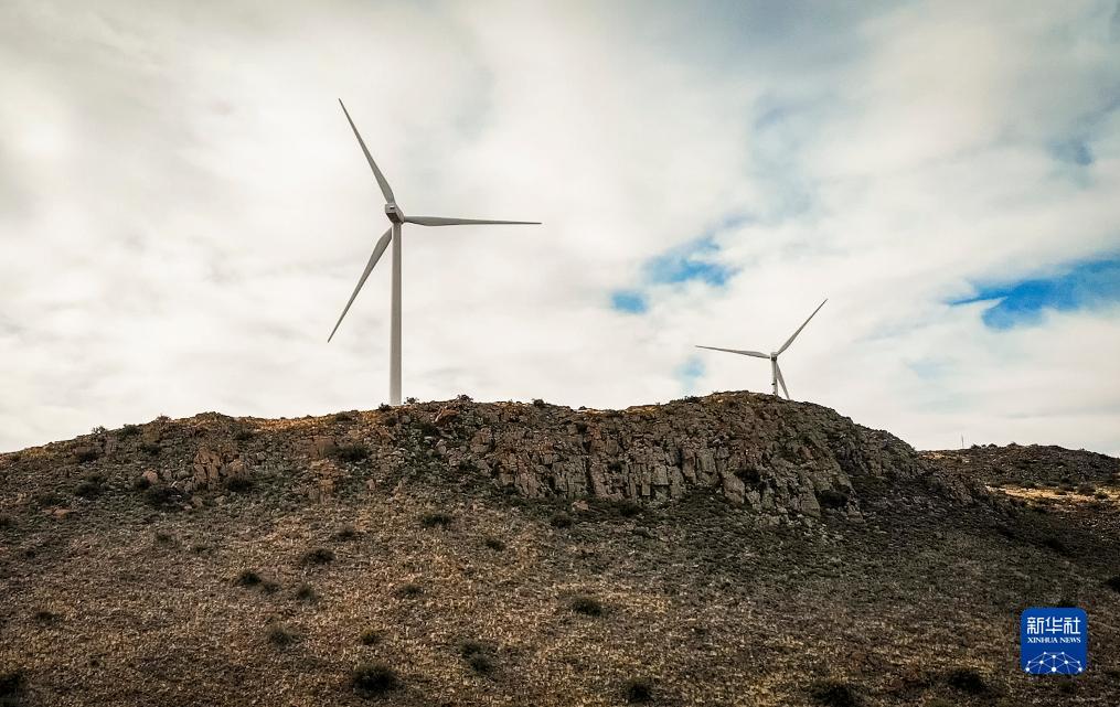 这是2023年7月25日在南非北开普省德阿镇拍摄的德阿风电项目风机。
