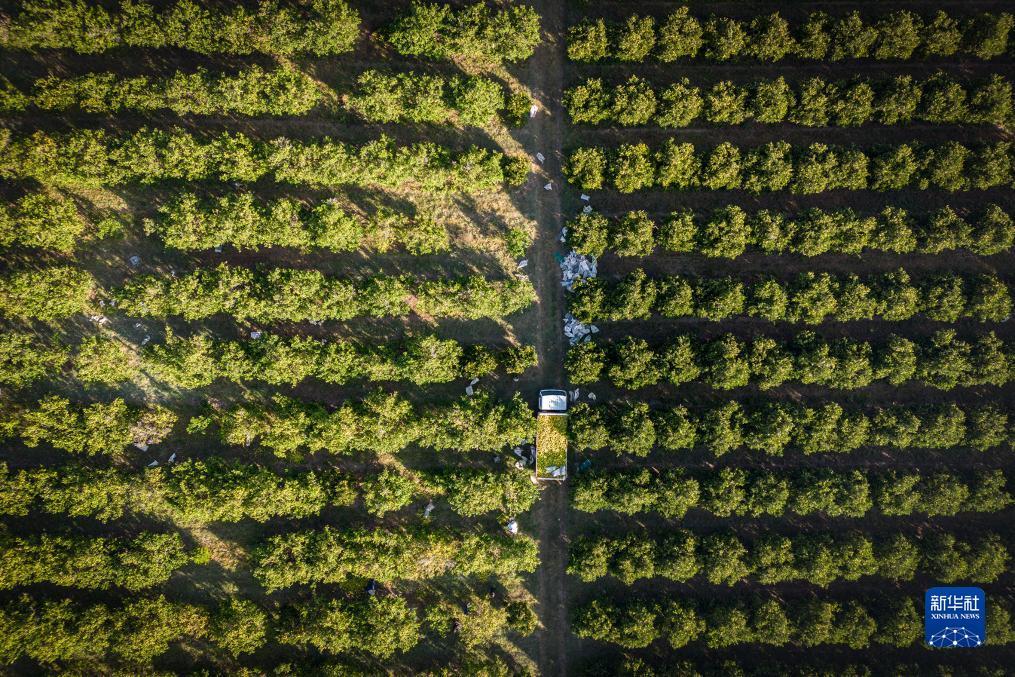 这是2023年5月24日在南非西北省拍摄的一处柑橘农场(无人机照片)。