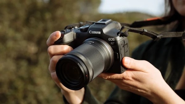 在感觉和操控方面,R7的一切都越来越接近佳能的高端机型。它甚至可以被视为专业消费者相机系列的开始。它具有舒适的深握把,这使得它在搭配更长的镜头时感觉更平衡。R7的设计包括一个取景器,5轴防抖机构,比R50更大的电池,以及一个独立的SD卡槽。