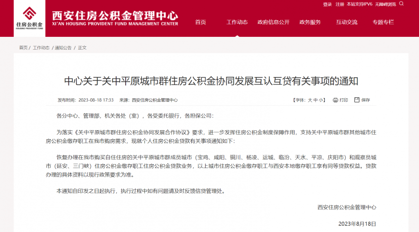 为落实《关中平原城市群住房公积金协同发展合作协议》要求,进一步发挥住房公积金制度保障作用,支持关中平原城市群其他城市住房公积金缴存职工在我市购房需求,现就个人住房公积金贷款有关事项通知如下: