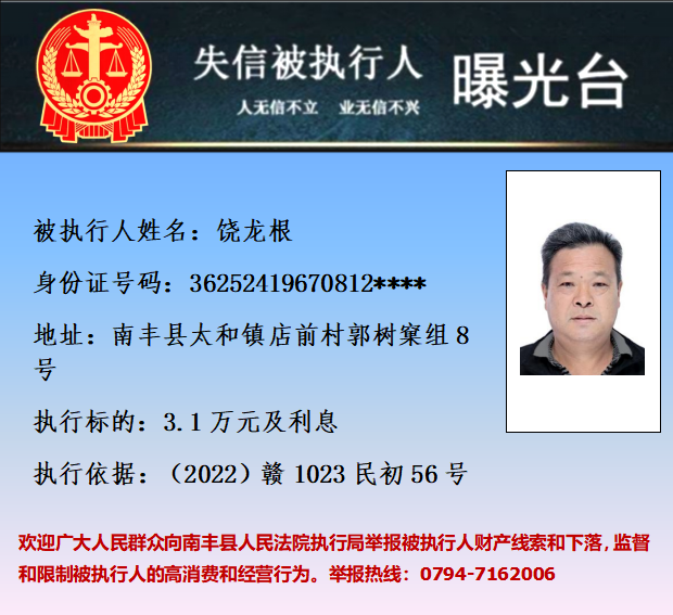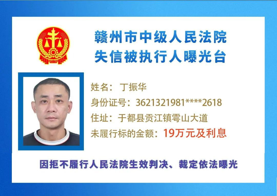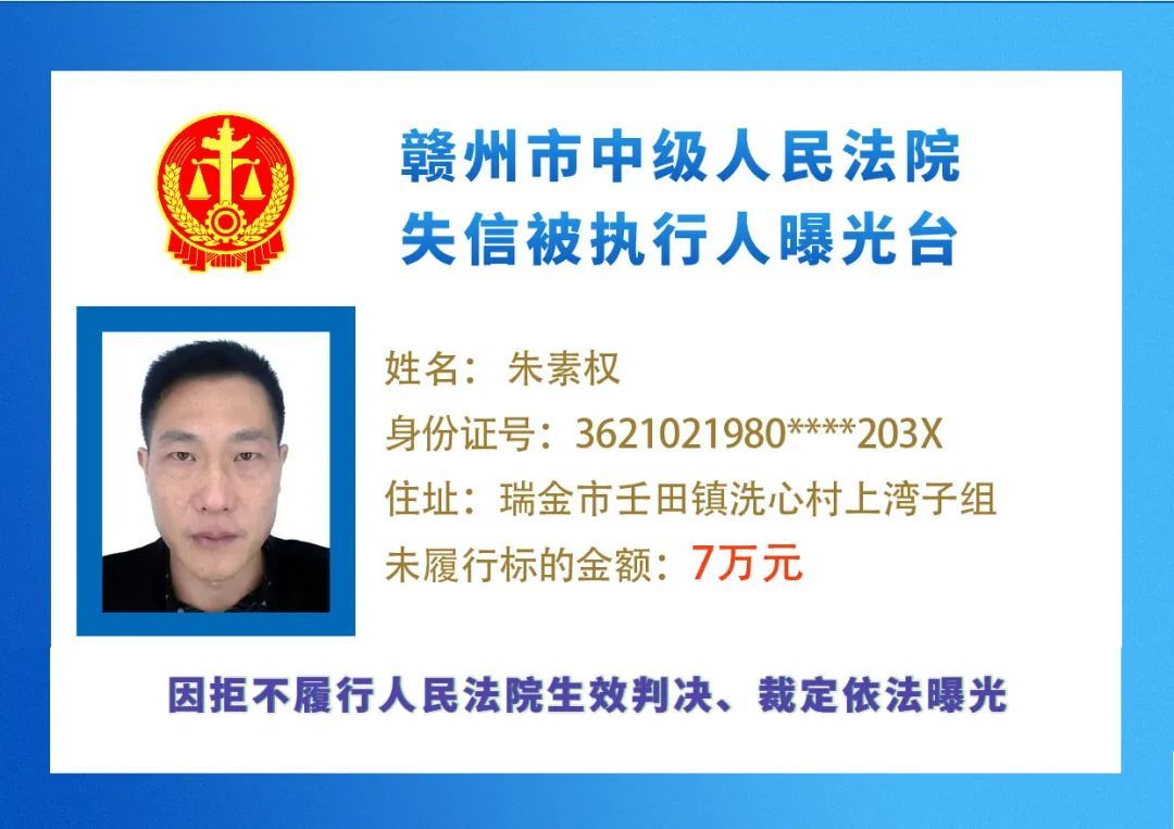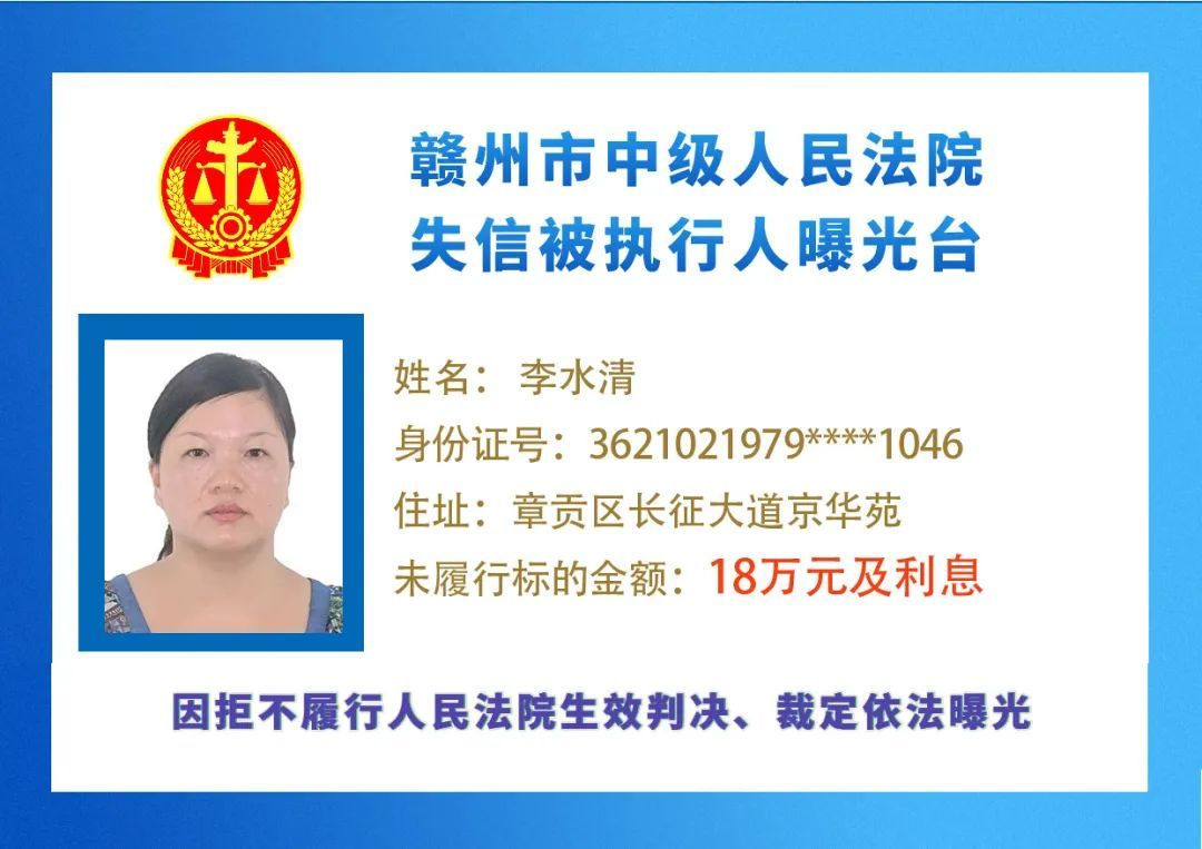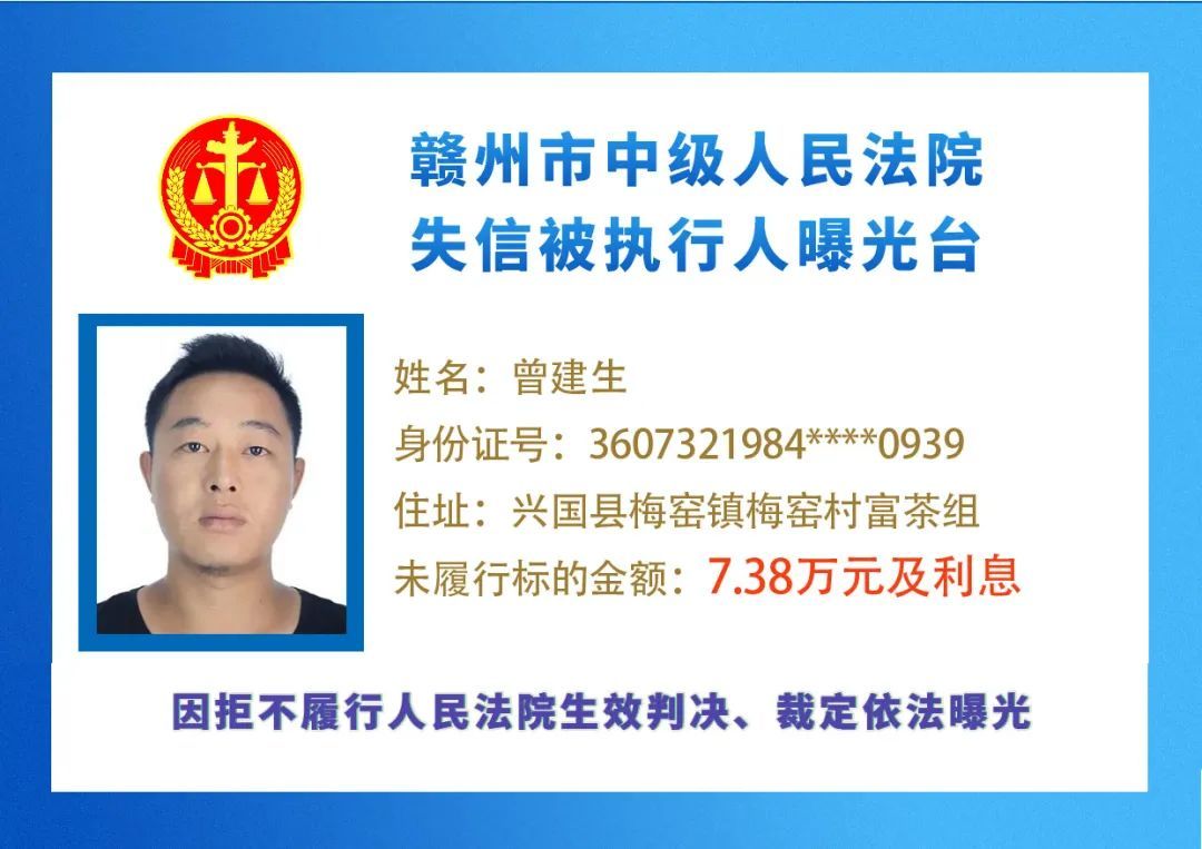 最新失信被执行人名单来了,大家快来看看,有没有你认识的人?赣州市中级人民法院失信被执行人曝光台