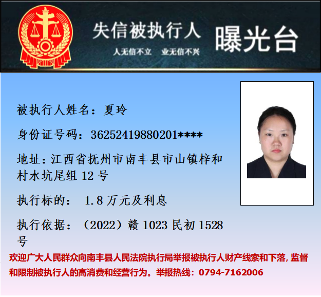 执行案号:(2023)赣0781执1691号