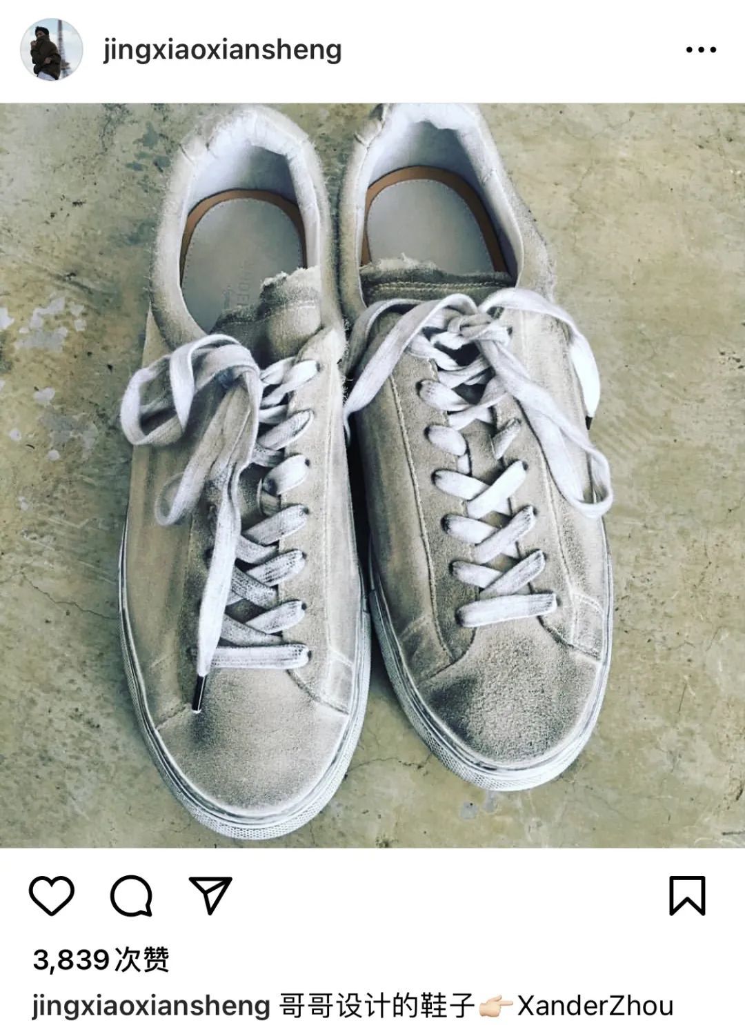 微博、instagram上,他会分享造型感强的穿搭,还有时尚单品,其中甚至还有Xander Zhou这样的小众品牌。