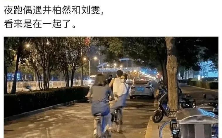 但是没过多久,“刘雯井柏然疑似恋爱”的爆料,就疯传全网。紧接着就开始被各路不知道哪路的路人路透,路透他们夜骑三里屯,同回小区,逛便利店啥的,隔三差五被人拍到。