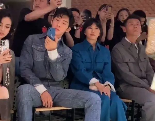 刘雯在北京走BV大秀,井柏然坐在嘉宾席,全程举着手机,拍摄女友的高光时刻。