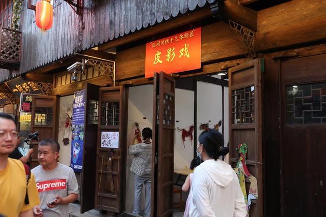 记者在现场看到,川沙老街上的生活集市上汇集了绘画、书法、雕刻、文创等40家摊位,还有皮影戏等10家不同内容主题的公益快闪店。不少摊位都满是川沙本土的传统文化味道:有的利用川沙当地的特色景点等元素制作文创产品,有当地特色的手工点心、各式饮品,还有“文艺范”满满的手工扇子、土布玩具等等。乘着晚风逛一逛,感受老街的夏夜风情,也可以把好吃、好用、好买、好藏、好看的一网打尽。