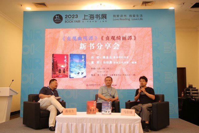 8月19日上午,历史玄幻小说《贞观幽明谭》《贞观绮丽谭》新书分享会在上海展览中心举行,活动由浙江古籍出版社总编辑钱之江主持,奇幻作家燕垒生,作家、编剧马伯庸参与活动。