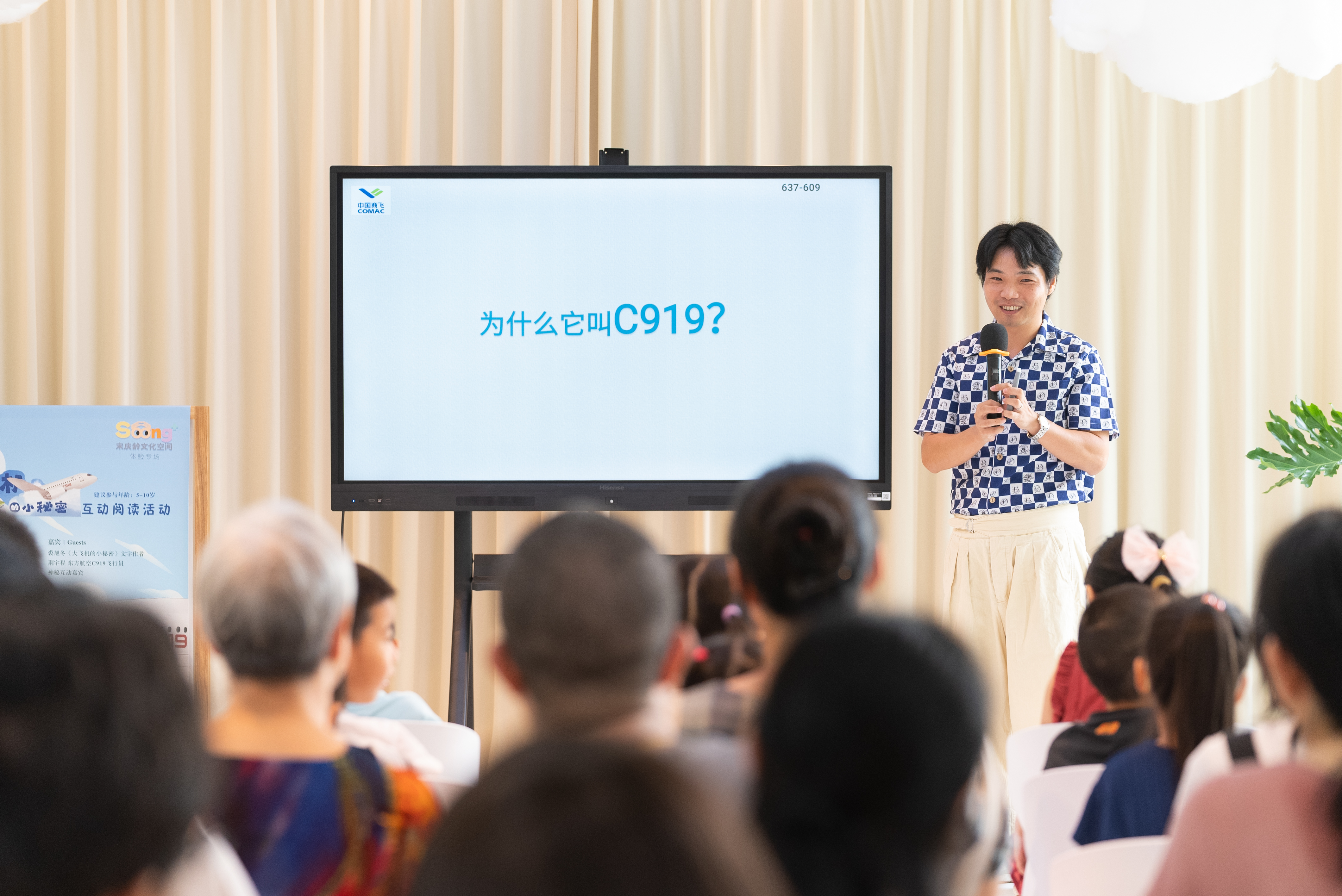 8月19日,作为上海书展的衍生活动——《大飞机的小秘密》互动阅读活动在宋庆龄文化空间举行,活动邀请了该绘本作者、C919设计工程师裘旭冬和东航首批C919飞行员荆宇程给小读者科普大飞机C919的知识,还有来自上海飞机设计研究院的纸飞机高手们手把手教小读者折纸飞机,并举行纸飞机比赛。