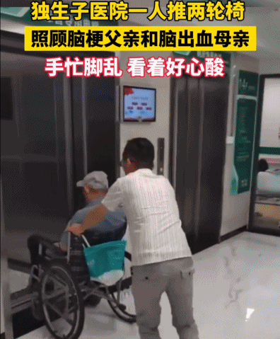 医院做检查时,他先把父亲推进电梯,转身再去推母亲,手忙脚乱的样子,让人看了一阵心疼。