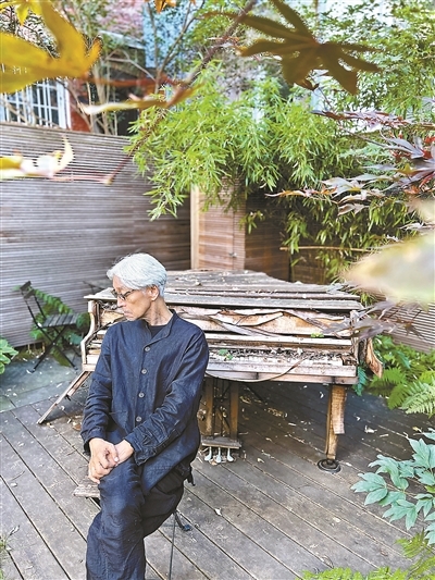 坂本龙一与纽约家中庭院里逐渐归于自然的钢琴合影
