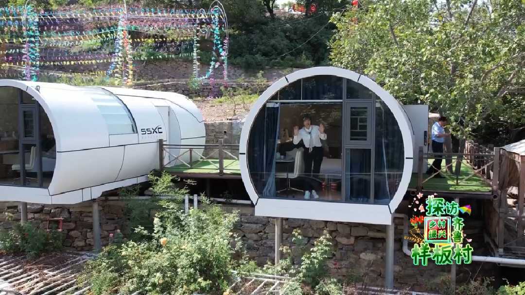 除了村民的房子改造成的民宿,济南鸿腾实业有限公司副总经理柏永柱还带我们参观了他们新建的太空舱主题树屋民宿,科技感十足!