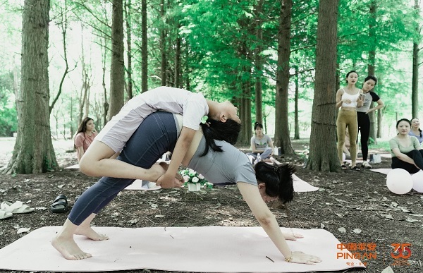 小伙伴们换上专业的瑜伽服,脚踩粉色瑜伽垫,沐浴在透过森林树影的暮光下,呼吸着清新的空气,心情无比愉悦。活动开始前,专业的瑜伽老师首先带领大家热身,帮助身体转换到运动状态;随后开启了专业的瑜伽课程。通过近1小时的锻炼,大家的呼吸畅快了,筋拉伸了,背挺直了,整个身体无比的伸展,感觉平日里车水马龙的喧嚣已彻底远离,此时的身体和心灵已回归大自然,融入山、融入树、融入风中。紧接着进行互动PK环节,通过瑜伽动作模仿、亲子瑜伽造型和平板支撑比赛,现场评选出瑜伽女神、最佳亲子、平板支撑最强者,并颁奖合影留念。每个参与者精神抖擞、兴致盎然,挥洒汗水却乐在其中,尽情享受着与大自然的亲近和瑜伽带来的愉悦。