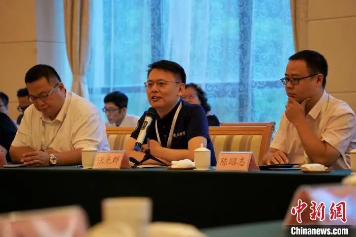8月21日,大陆任教台湾教师融合发展主题研修活动在烟台举行。台湾教师在座谈会上发言。中新社记者 张杨彬 摄