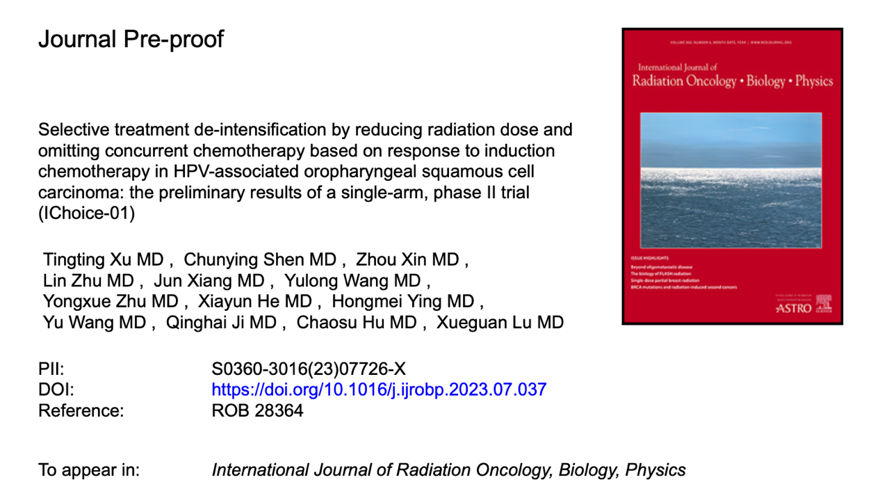 该成果近日在国际放射肿瘤学顶刊《International Journal of Radiation Oncology·Biology·Physics》在线发表。