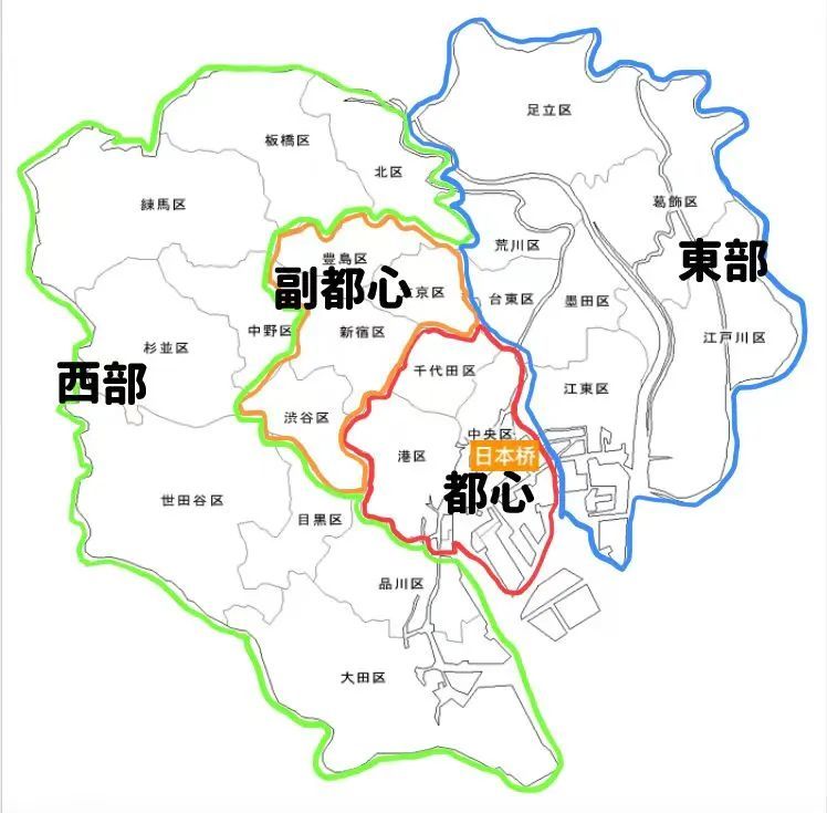 兜町地区与附近重要CBD的位置示意图 ©平和不动产
