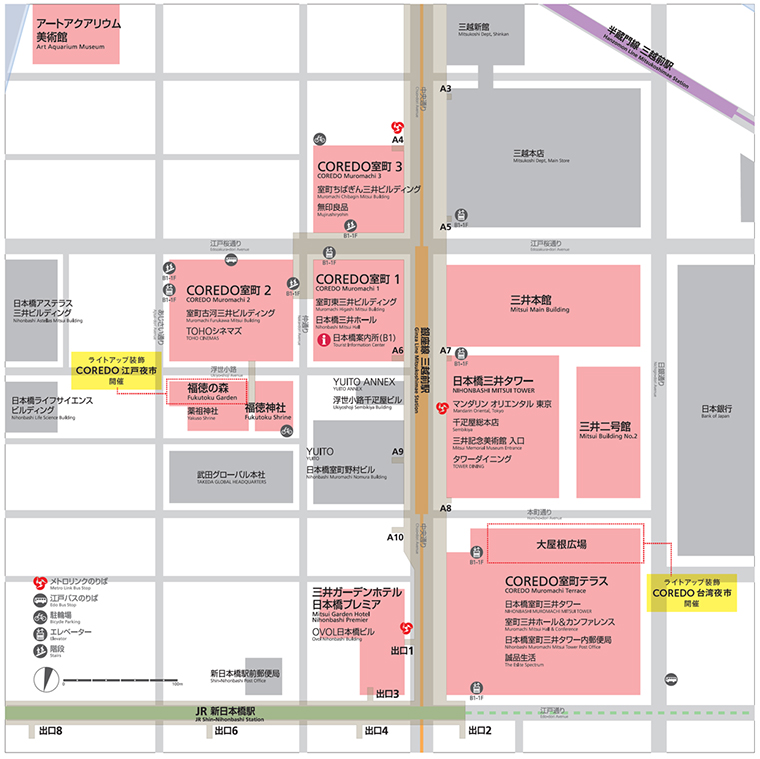 粉色为日本桥室町区域三井不动产相关开发项目©三井不动产