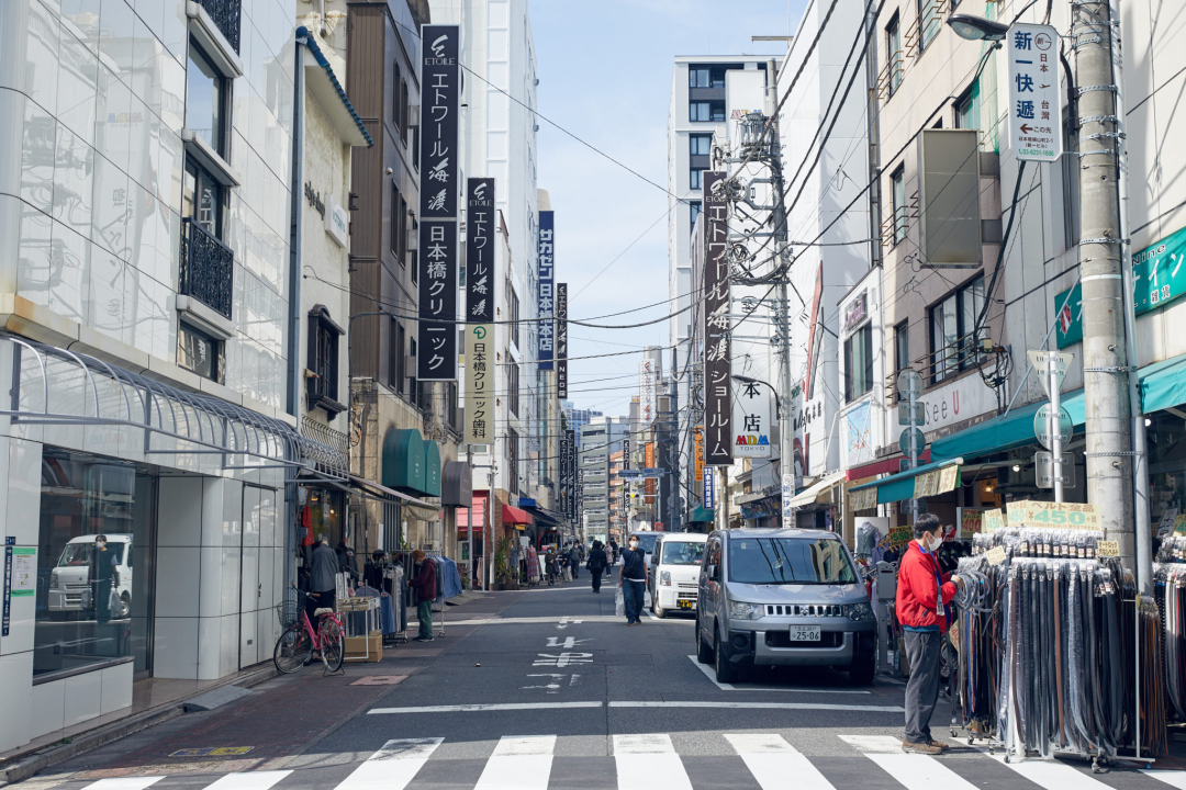 这里自江户时代以来就是批发街,如今仍留着许多珍贵的旧式设计建筑,保持着昭和时代令人怀念的空间氛围。这一代有许多门面狭窄、深度深邃的店铺,大多都是个人小业主。随着许多业主年龄增长,后继者不再继承生意,只能考虑停业。这种情况下,土地被卖掉,零散地现金化,长此以往,批发街的氛围就会丧失,许多本地业主产生了危机感。