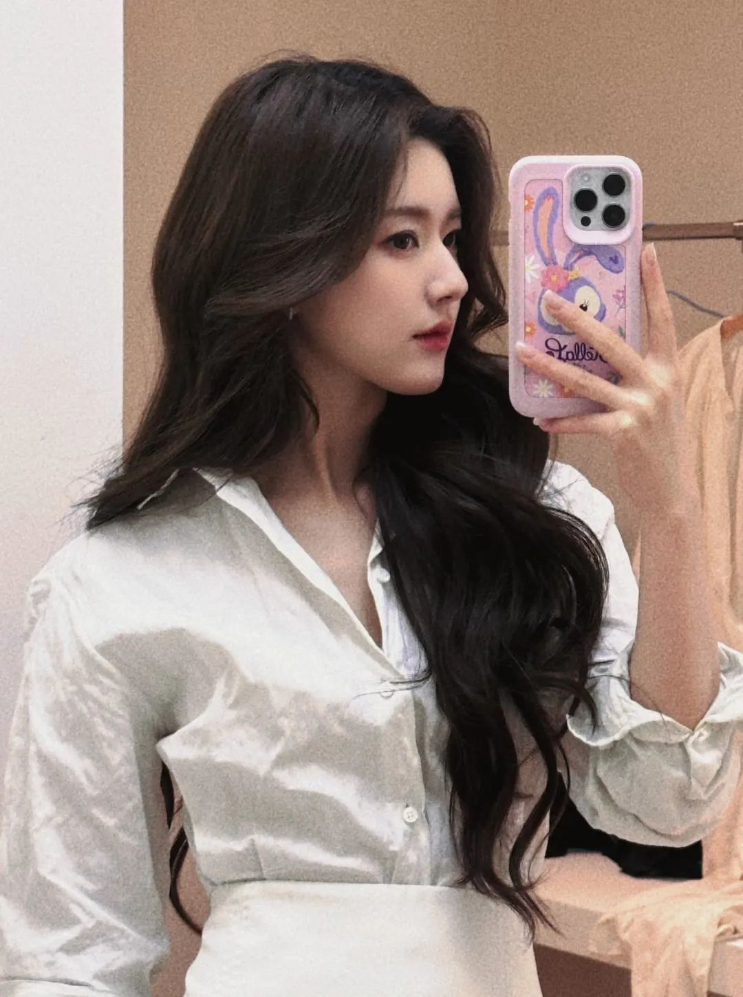 另一张对镜自拍照,则有点撞脸白鹿。