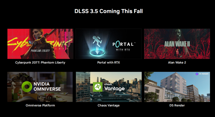 与之前的DLSS 3一样,想要让DLSS 3.5顺利应用,游戏厂商的支持是少不了的,从秋季开始,就将有游戏支持DLSS 3.5,包括《心灵杀手2》、《赛博朋克2077》和《传送门》,此外与DLSS 3不同的是,DLSS 3.5所提供的这套技术在RTX显卡中都可以得到应用。