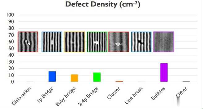 DSA中的缺陷问题是复杂的,影响缺陷的因素很多。工艺相关的问题可能包括退火温度、蚀刻方法、剥离方法和所需的膜厚度,而BCP本身的纯度和成分等化学因素可能会引发问题。