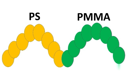 当使用诸如ATRP的技术合成时,PS和PMMA聚合物形成嵌段共聚物(BCP)PS-b-PMMA。PS和PMMA的嵌段在聚合物链内共价连接,但由于其化学差异,它们分离成不同的结构域(见图1)。