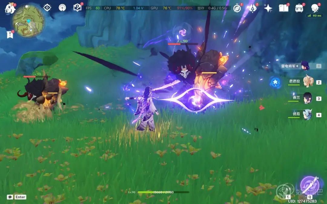 另外就是大热门 《原神》 启动,经过实际测试,中画质 60 帧模式下,基本上是可以满帧运行的,激烈战斗途中也基本能保持 50 以上。但如果你想要更高清的画面,在高画质下,基本上日常跑图能到 50 帧左右,激烈战斗帧数会降低一点点。