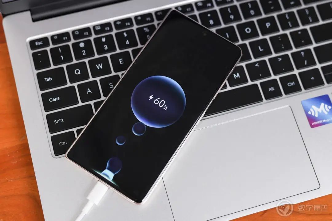 包装附送的 65W 快充可以兼容荣耀手机、平板的快充协议,一头走天下,完全充满只需要 1.5 小时。比较有意思的是自带 「荣耀电脑管家」 可以设置电脑的充入电量,例如长时间插着电源的情况下,可以让电源维持 70% 的电量,这样就能有效保护电池健康度。