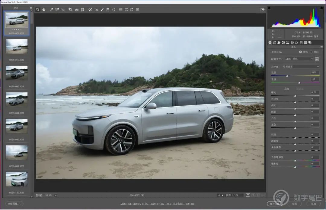 这里测试一次性拖入 100 张 RAW 照片进入 Photoshop 的 Camera RAW 插件中,总大小约为 6GB,对于轻薄本而言,也算是比较大的处理压力了。而在模拟修图的处理过程中,都比较意外地流畅,特别是在涂抹处理画面细节的部分,反应都足够快,体验真的很不错。