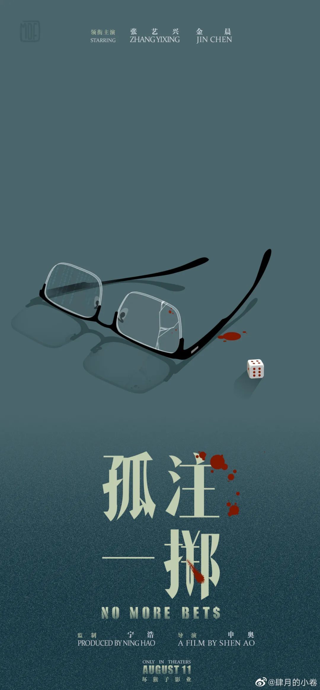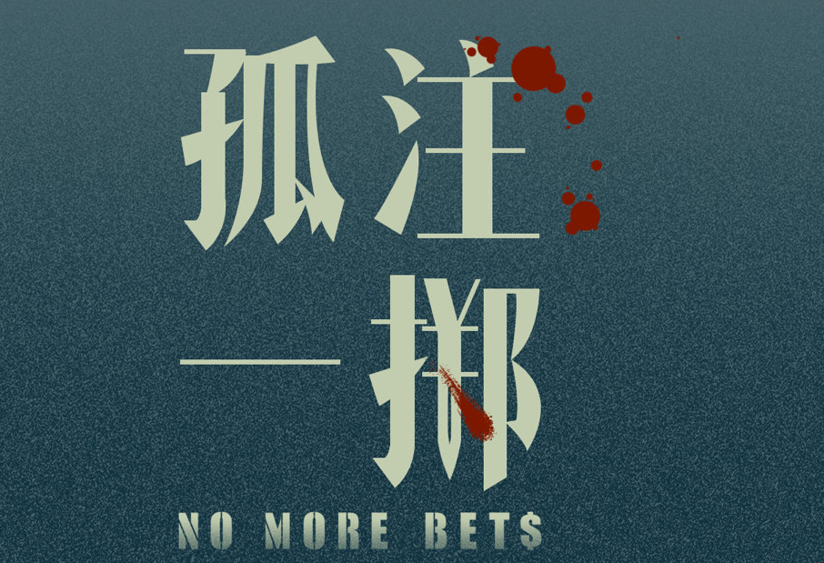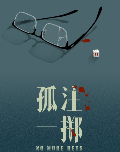 下半部分的汉字“孤注一掷”是以毛笔字绘制,英文字体no more bets的“s”像$的符号,而且黄色的字体和绿色的背景营造一种赌场风格的视觉。
