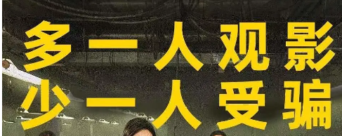 其中上半部分占据了黄色字体“多一人观影 少一人受骗”,起到警醒作用。