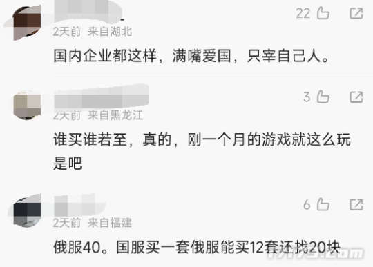 不过很快就有玩家发现,这套时装在俄服的售价只要549彩钻,换算成软妹币只要40左右。如此之大的差价,也瞬间引爆了整个国服玩家群体,网上也开始充斥着大量的吐槽以及对国服官方的指责之声。