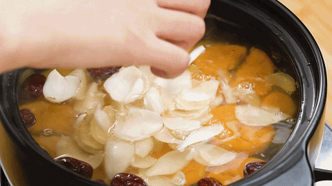 再加入清洗好的红枣、生姜片、清水